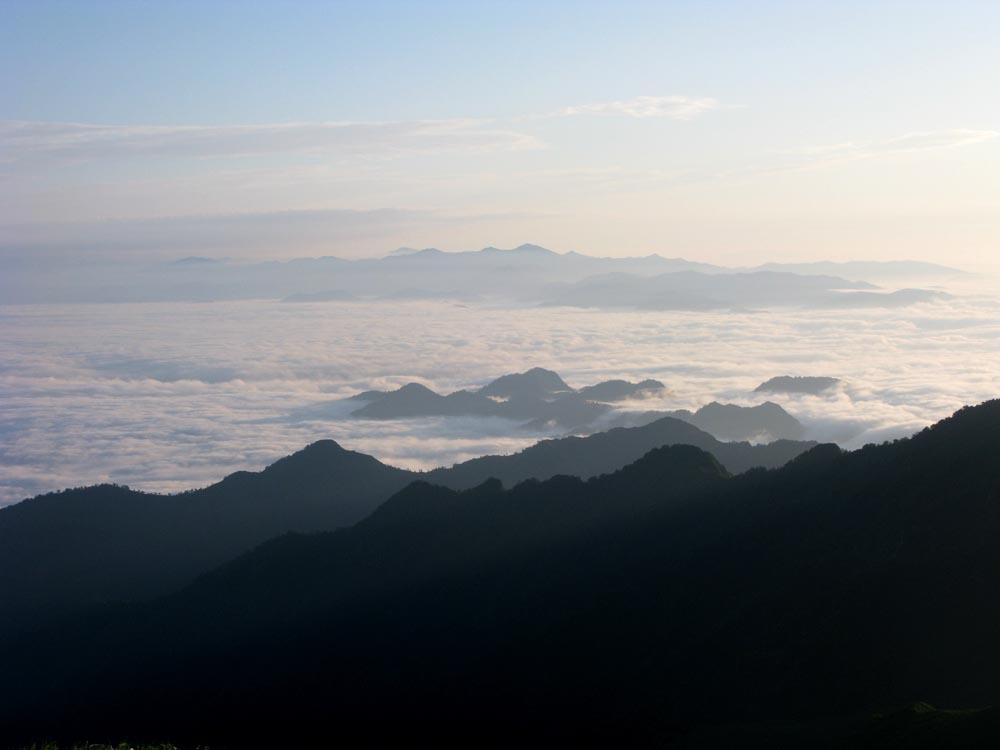 翌朝は晴れの雲海上だった。御西岳〜北股岳迄のゴミ拾いをしながら梶川尾根より下山した。