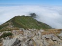 山頂付近は真っ青の空で雲海が素晴らしかった。青空と雲海のコントラストは何とも言えず良かった。ゆっくりしていたかったが帰りのこともあるので早々に下山開始。頂上小屋で昼食を摂る、管理人は居なかった。でも切合小屋と三国小屋に管理人は居た。10月の連休が過ぎれば降りるのだろうか。