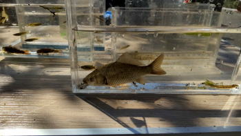 ギンブナ、アブラハヤ、シマドジョウ、メダカ、ヨシノボリ、タイリクバラタナゴ、タモロコ、ニゴイ、アメリカザリガニ、ヌカエビ、スジエビ、など目標とした10種以上のいきもの捕まえることができました。
