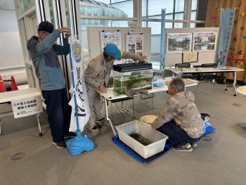 ▲新発田川を愛する会・鮎の遡上パネル展示 |