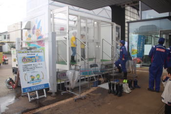 ▲国土交通省・降雨実験装置「雨ニティー号」 |