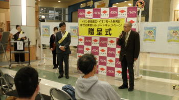 令和8年4月11日イオン新発田店様よりイオン・イエローレシート、キャンペーンのギフトの授与式がありました。