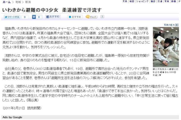 2011-03-21 読売新聞12面 東日本震災ボランティア 若月理事が橋渡し