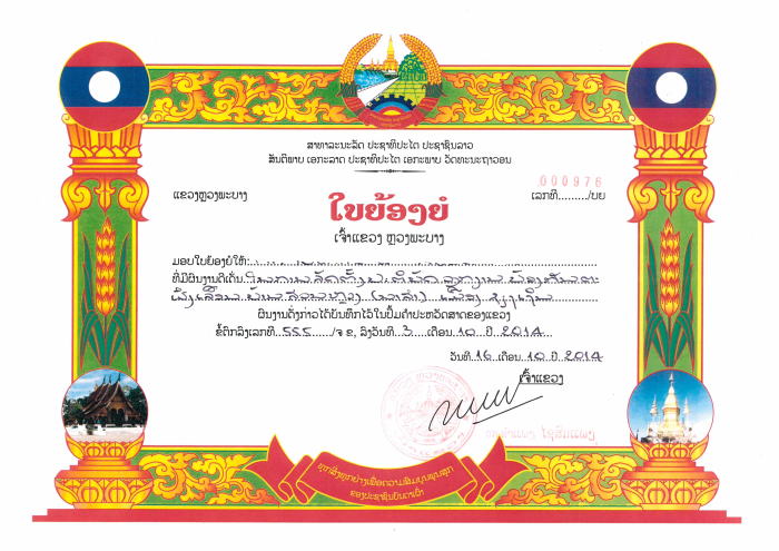 ラオスの文化財および観光地への理解と交流の促進に寄与されたことを、