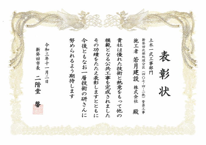 令和3年度 新発田市建設工事優良施工業者表彰