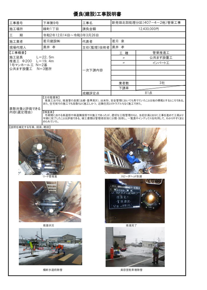 土木一式工事部門 新発田北部処理分区(407−4−2他)管渠工事