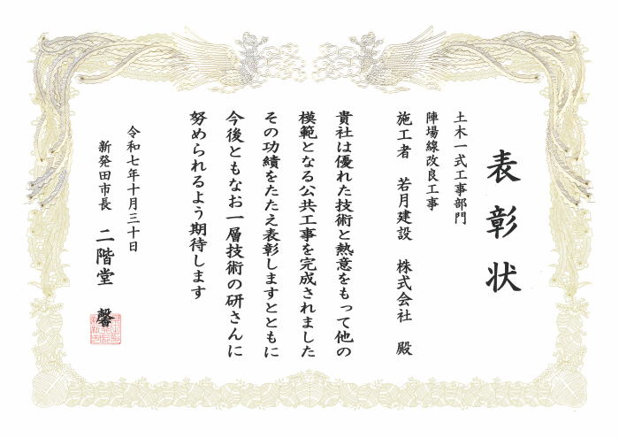 令和7年度 新発田市建設工事優良施工業者表彰