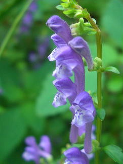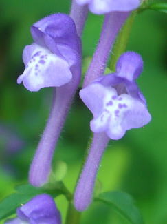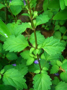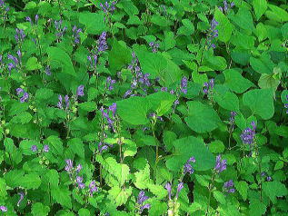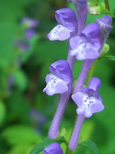 紫色の花が2つずつ並んで咲いていました。五十公野公園遊歩道、杉ノ沢で見つけました。